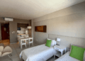 Monoambientes equipados para 2 o 3 personas con cocina con horno y anafe eléctricos, microondas, heladera, pava eléctrica, vajilla completa. TV Led 24”. Aire frío/calor.